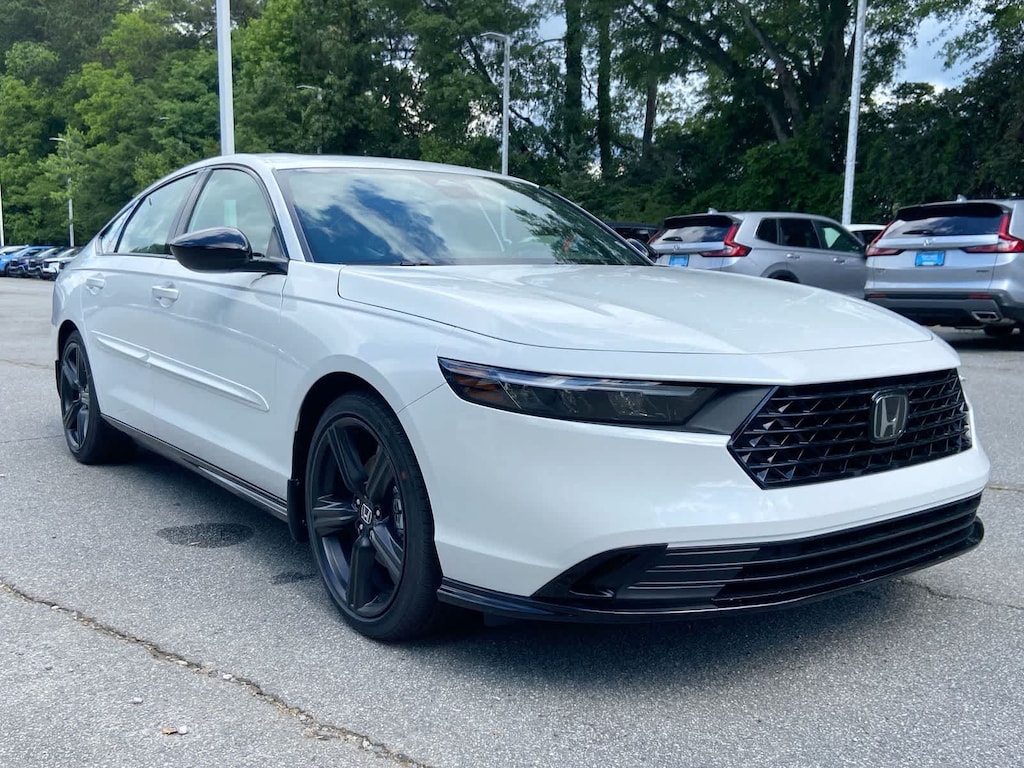 46/41 City/Highway MPG Platinum White Pearl 2025 Honda Accord Hybrid Sport-L FWD eCVT 2.0L I4 DOHC 16V